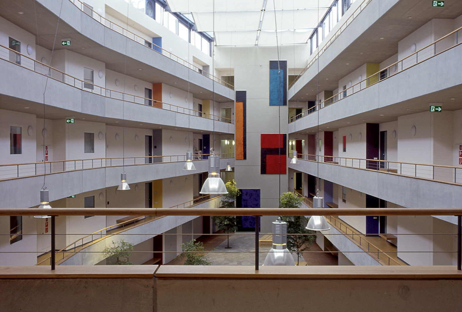 Um einen überdachten Innenhof gruppieren sich individuelle Wohneinheiten unterschiedlicher Größe. Die weiträumigen Erschließungsflächen schaffen ideale Kommunikationsmöglichkeiten - hier darf man gern ein Schwätzchen halten.